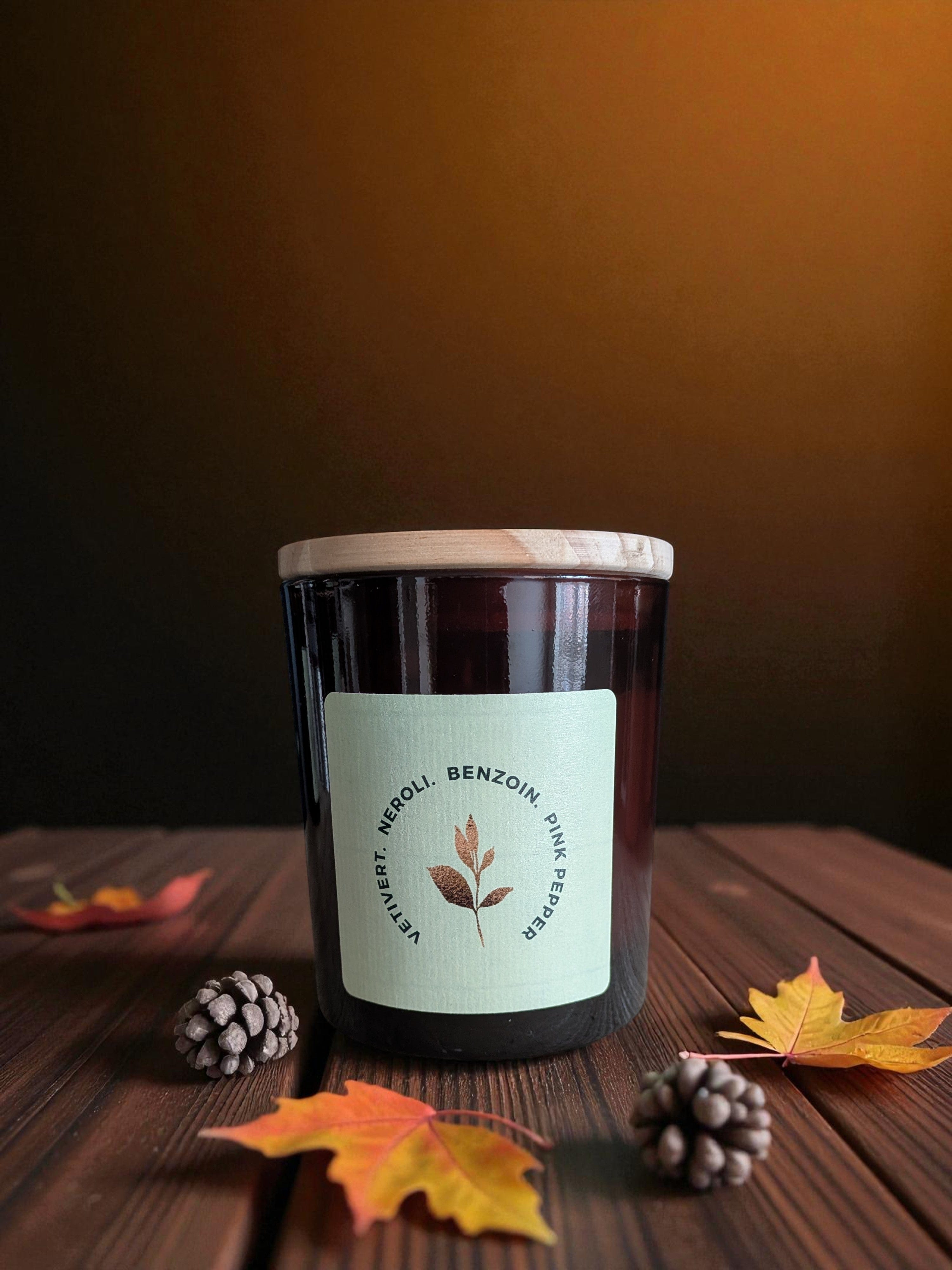 A crisp, refreshing blend inspired by the stillness of an autumn morning. Bright Neroli and pink pepper compliment the earthy vetivert and smooth benzoin capture the clean calm of the dew-covered leaves.